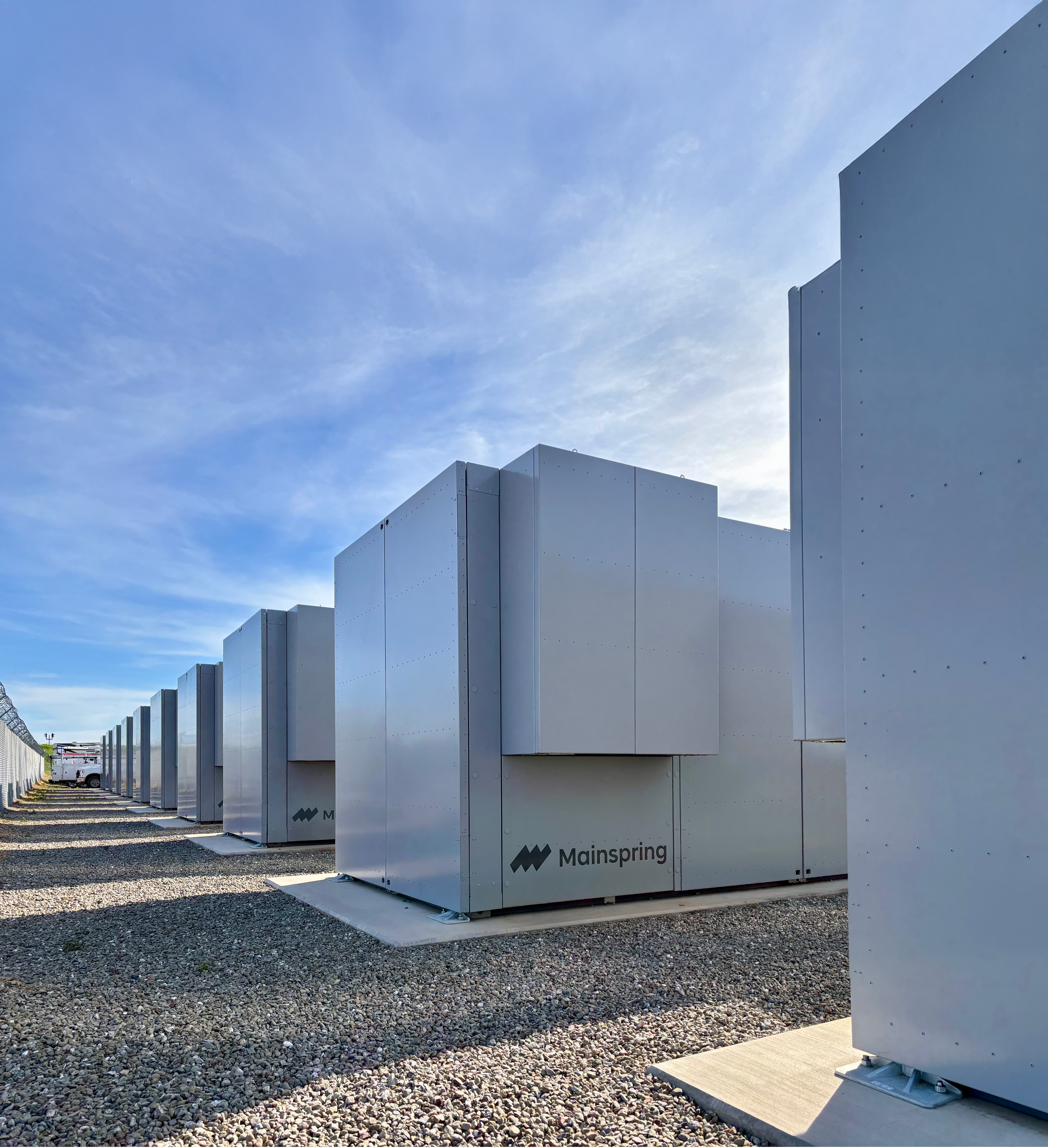 Whether deployed quickly as a grid-scale array or as a single unit, Mainspring is delivering reliable, flexible, affordable power for customers on both sides of the meter.
